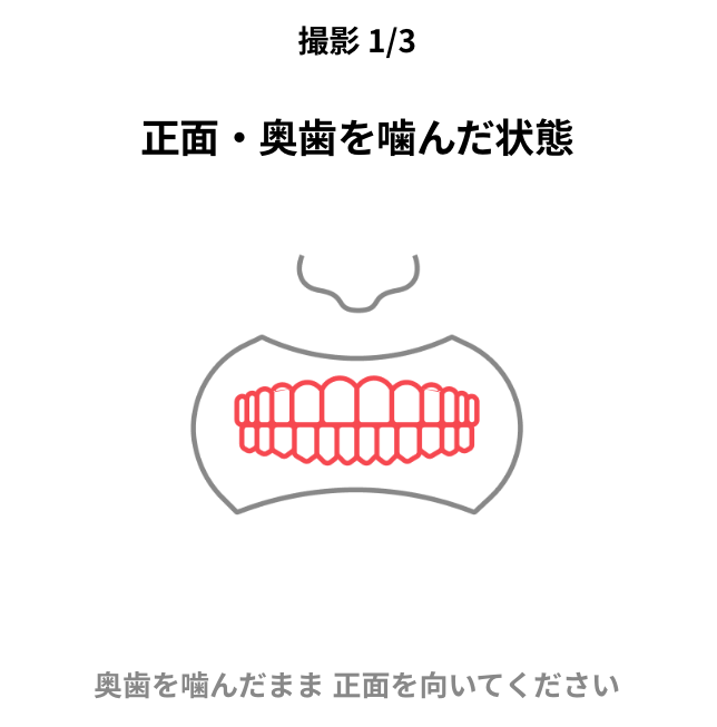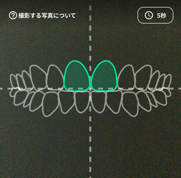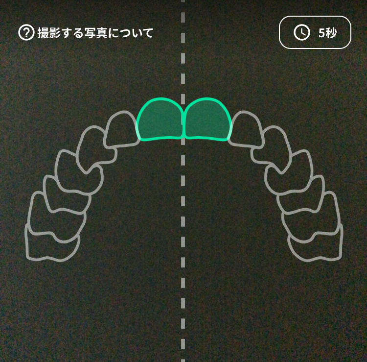 前歯をガイドに合わせて、歯の正面を奥歯を噛んだ状態で撮影