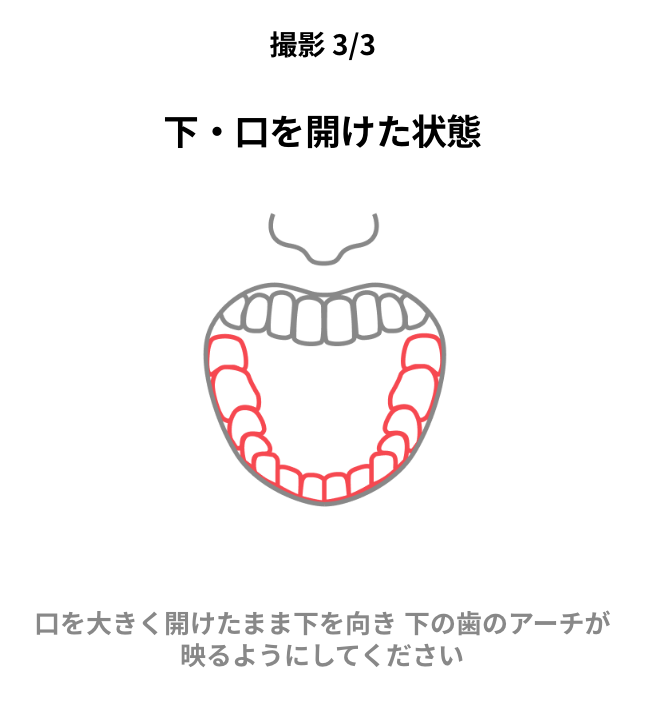 口を大きく開けて・下の歯並びがはっきり見えるように撮影
