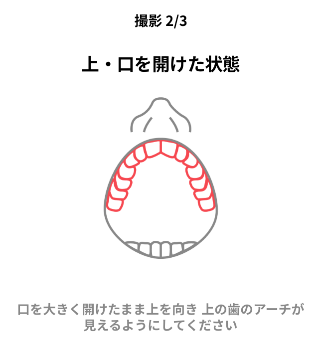 口を大きく開けて、上の歯並びがはっきり見えるように撮影
