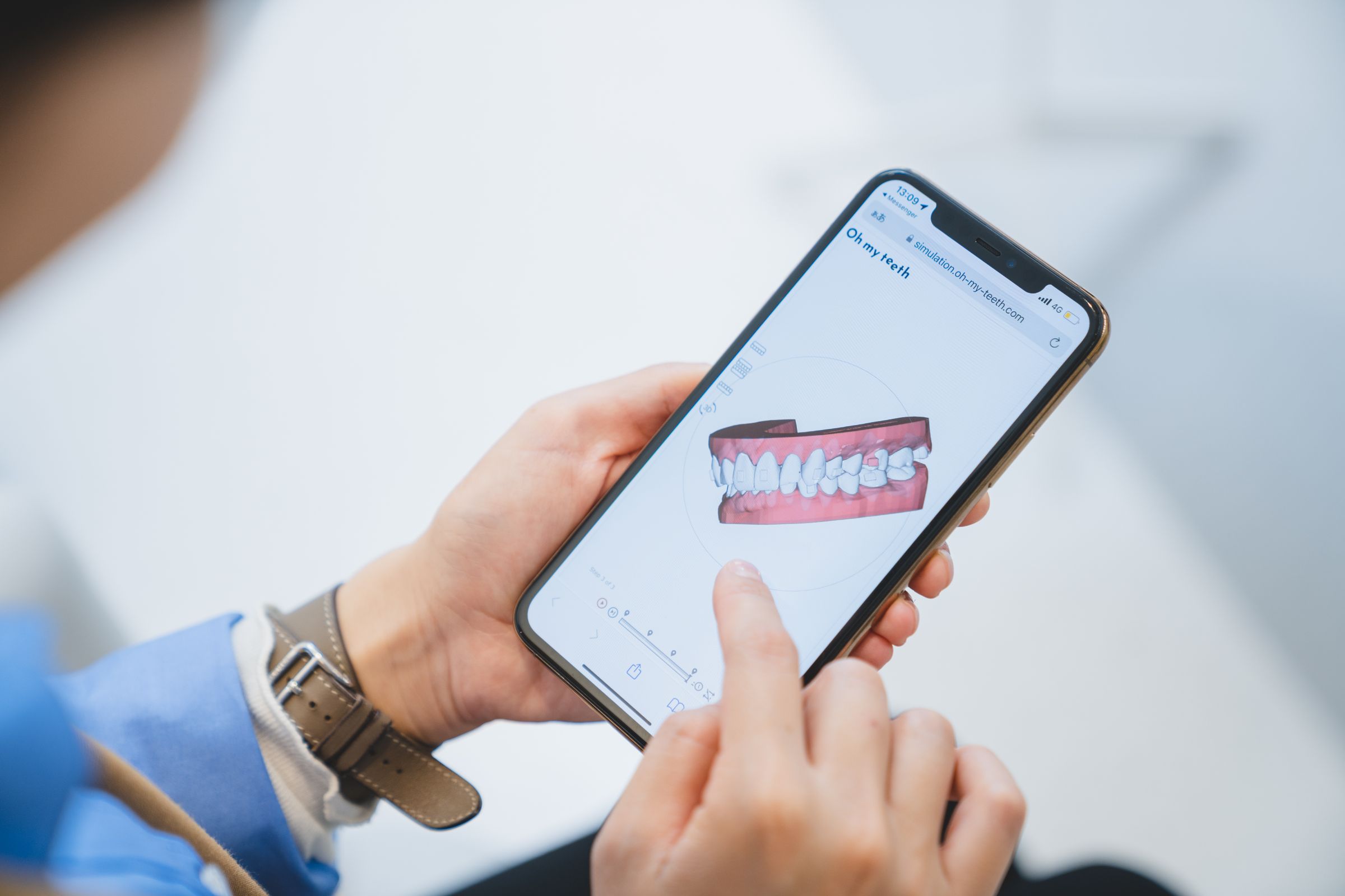 通常、このようなシミュレーションは歯科クリニックに来院して確認することが多いですが、Oh my teeth の場合は来院せずに、自宅でじっくりシミュレーションを確認できます。