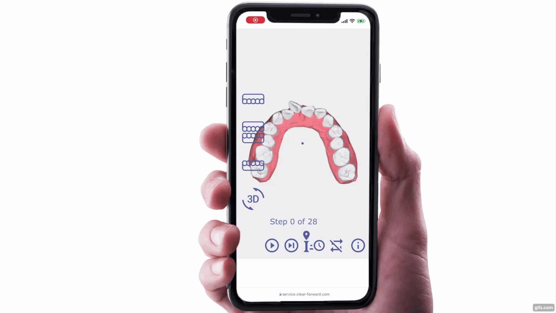 シミュレーションは3Dで作成され、あらゆる角度から歯並びの変化予測を確認できます。操作もスマホから簡単にできます。