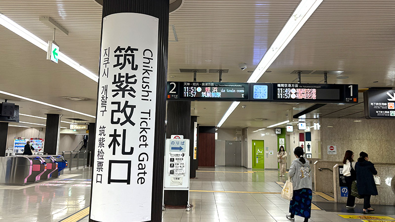 1. 筑紫改札口を出ます。