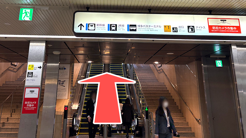 2. 筑紫口方面(B)のエスカレーターで上ります。
