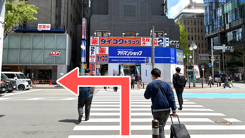 6. 横断歩道を渡り、左へ直進します。