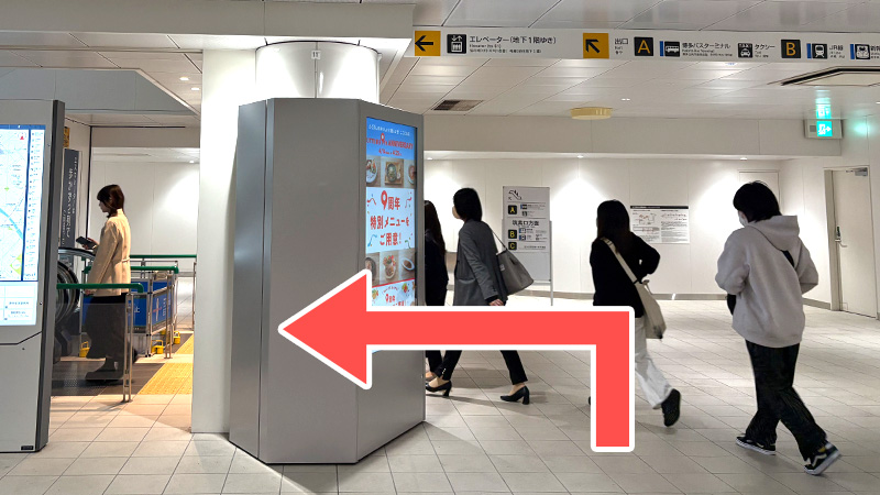 3. エスカレーターを上がりましたら右に曲がり、左へ進みます。