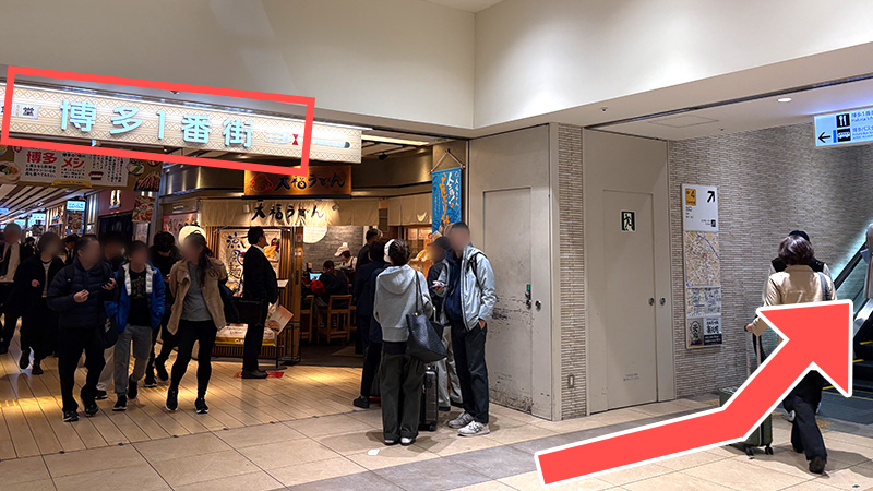 5. 「博多1番街」の右手にあるエスカレーターを上ります。