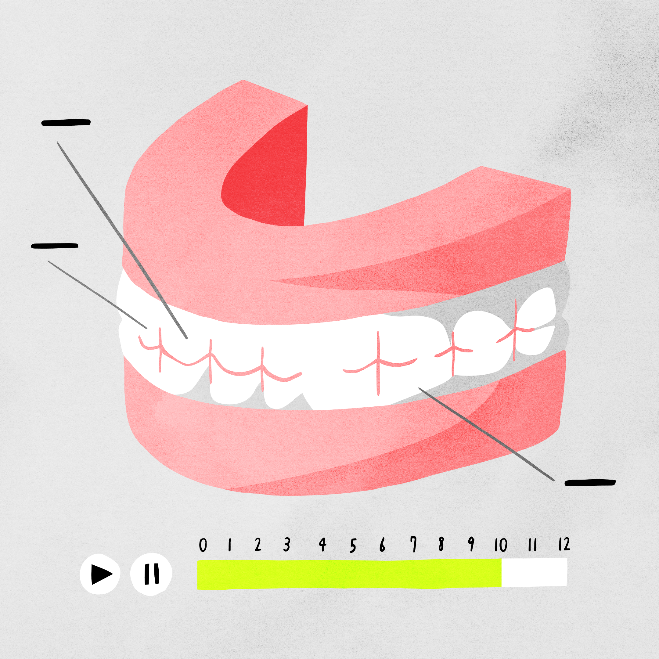 ドクターが最新の研究や過去ユーザー事例のデータを分析し、効率的に歯を動かすシミュレーションを作成してます。またOh my teethではデータサイエンティストが10,000人を超えるユーザーの歯の動き方の分析を行い、データに基づいてシミュレーション作成時のルールを改善しています。ドクターの知見や経験のみに頼らず、数多くのデータを用いて作成されるシミュレーションの精度は高いです。症例に合わせてアタッチメントやエラスティックなどを用いることでさらに効果的に歯を動かすことができます。