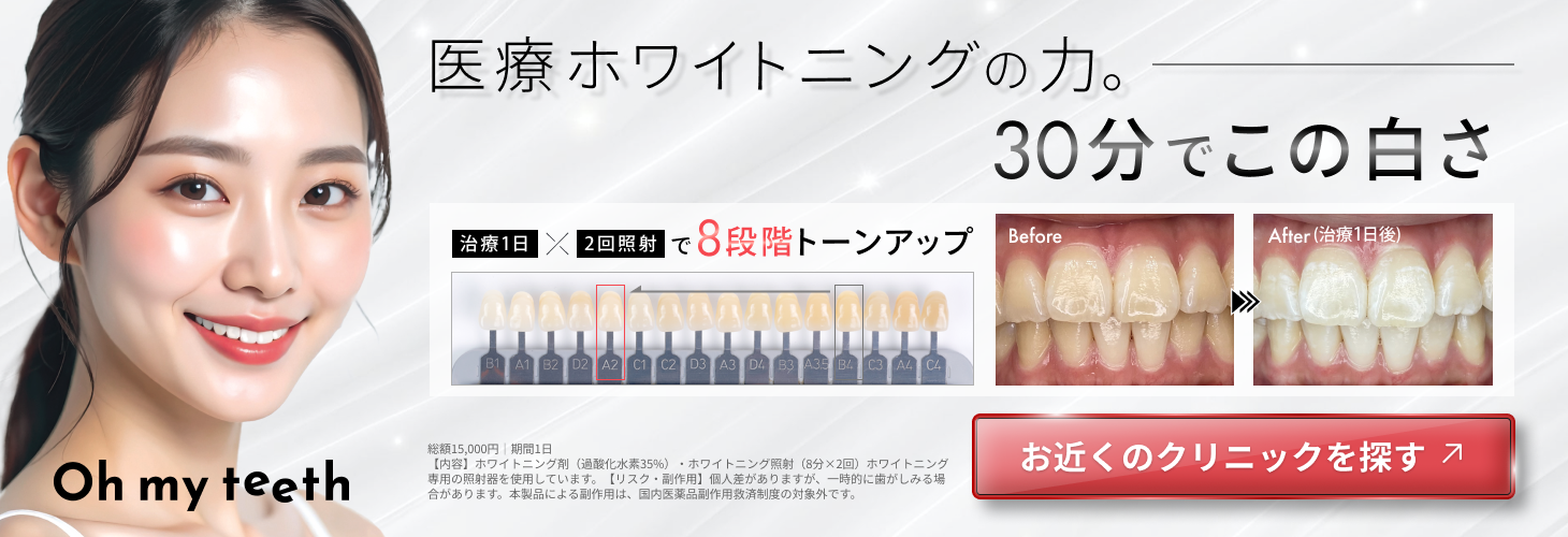オフィスホワイトニングにお悩みの方は、Oh my teethをご検討ください。