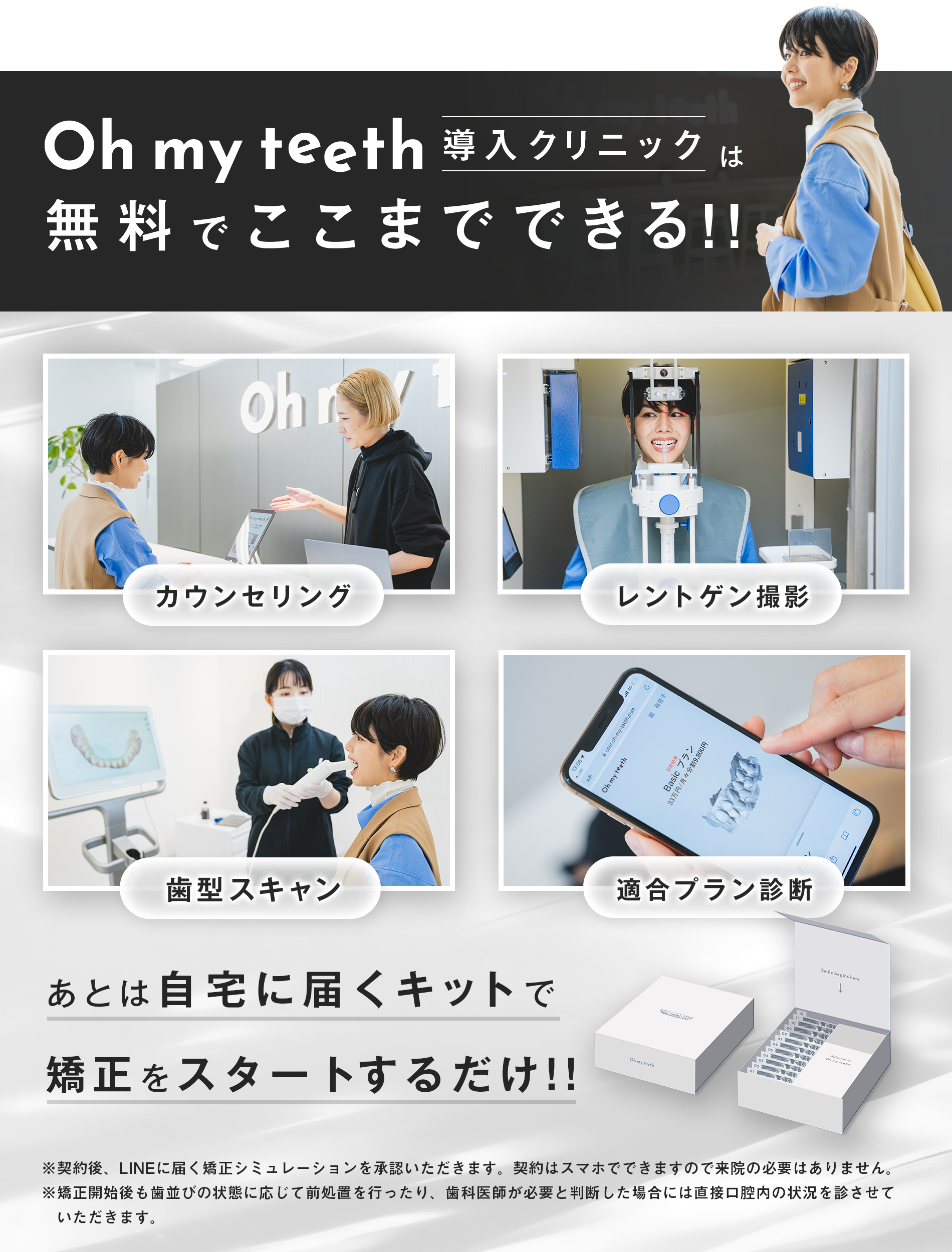 また、 マウスピース矯正 Oh my teeth導入クリニックでも、無料で歯並び相談ができます。